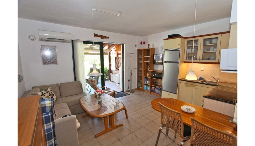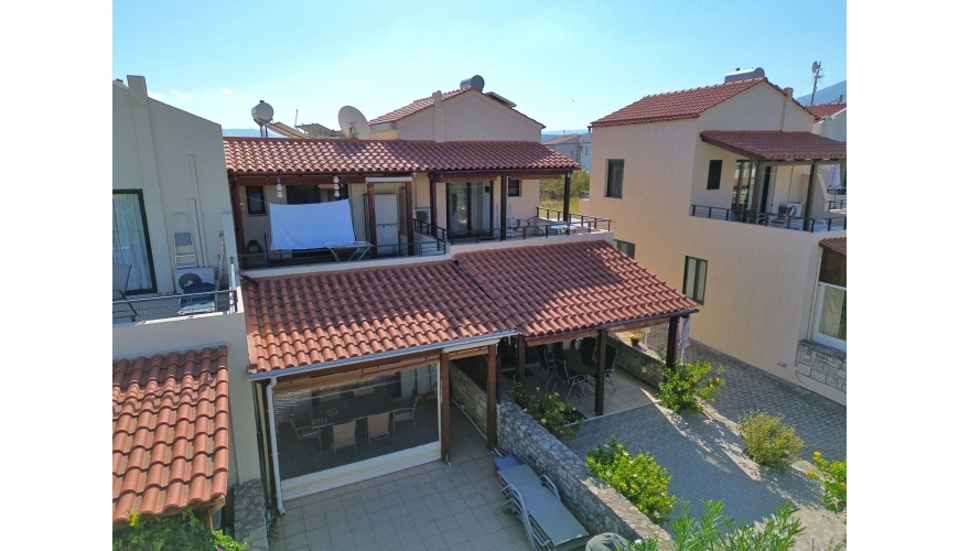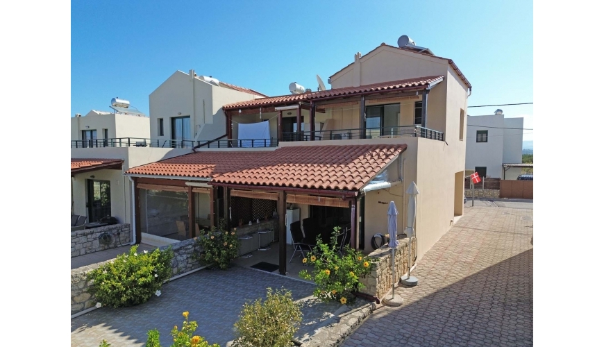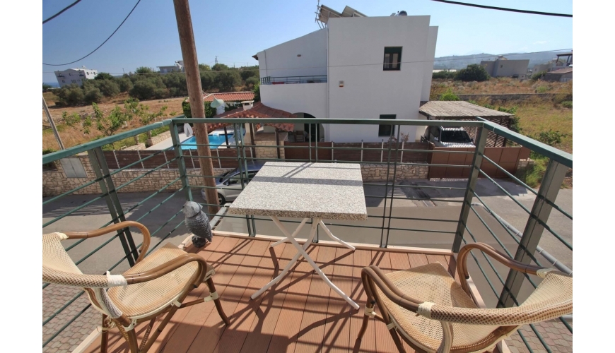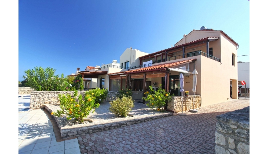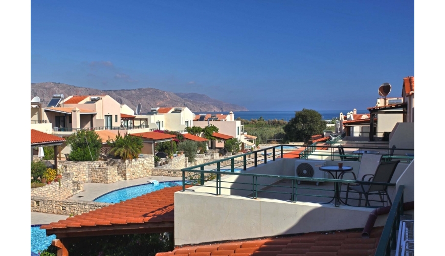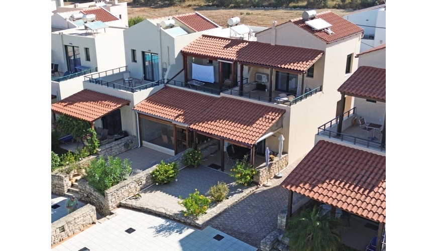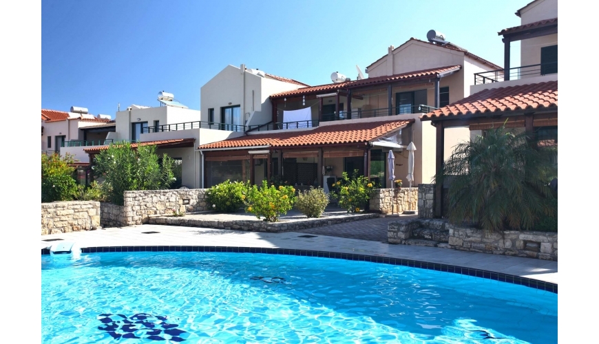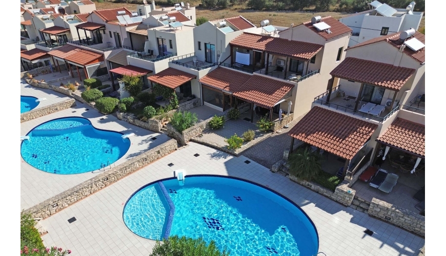 This very well maintained complex of holiday apartments built in 2006 has extensive paved terraces, a swimming pool shared between just 6 villas with a separate children's pool. Part of a larger development with several pools this is a lovely community comprising many different Nationalities. It is situated a short 10 minute stroll from the nearest beach and is just a 5 mins drive to both Kavros and Georgioupolis — with their wide range of tavernas, shops and of course golden beaches.